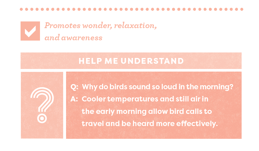 In I Love Birds! written by Jennifer Ward and illustrated by Alexander Vidal, you'll find 52 activities for kids ages 4 to 8 that will engage children's imagination and sense of wonder as they observe birds in the wild. Here's an example of one activity from the book that's perfect for a parent and a child as the weather warms up in the morning this spring.