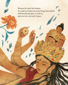 Lokeshvara’s tale of compassion and resilience teaches us that even when we feel overwhelmed by the suffering we see in the world, we can still find creative ways to help those around us.