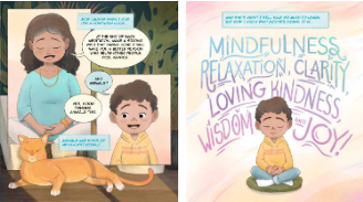 Through his experiences, Leo learns to meditate in the up times, the down times, and the in-between times. A graphic-novel illustration style gives Leo’s story a fun and easy-to-follow narrative arc. It gives parents, guardians, and teachers an opportunity to playfully introduce children to meditation and even includes a step-by-step guided practice at the end to get their kids started.