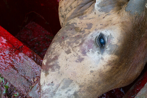 What I found I was carrying bit by bit from French into English was the story of the gruesome continuous, vast-scale extermination of animals brought on by us humans eating them. I also learned about intubated bears permanently immobilized in tiny cages in China, kept miserably alive as long as possible to be milked of their bile. I translated eye-witness accounts from slaughterhouses, industrial fishing vessels, animal-experimentation labs, zoos and circuses and bullrings, all of which routinely function on the basis of brutal disregard for the life and suffering of animals. It was horror piled upon horror. Ricard was very thorough in compiling the factual basis of his plea for the animals. I realized soon enough that this Buddhist monk had beheld with a 360-degree lens the many faces of the human exploitation of animals that has been taking place for thousands of years, and he had seen it getting worse and worse. I realized that, rather than just a pep talk for vegetarianism, I had in my hands a work of compassion for all the sentient species with whom we share life, a plea to end or at least pare down all the ways in which we customarily abuse and torture animals for entertainment, sport, and profit, not leaving out the inevitable call to end or at least pare down the human practice of killing them daily in inconceivably huge numbers for food.