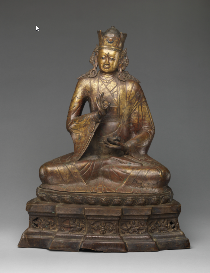 Padmasambhava (8th century), often known colloquially as Guru Rinpoche (precious teacher), is a central Tibetan Buddhist figure specifically in the Nyingma, or Old Tradition of Tibetan Buddhism. According to some of the earliest Tibetan literature, Guru Rinpoche is described as a tantric adept that brought Vajrayana Buddhism to Tibet from India in the 8th century. There are countless terma (treasure texts) attributed to him and his spiritual counterpart, Yeshe Tsogyal. There are, in fact, few books in the Nyingma tradition where Guru Rinpoche is not a central figure.