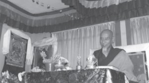 We should not be too afraid. We must train the mind carefully. Whatever appears to us, our mind should remain calm. We may see images and hear sounds. Developing fear, our hair may stand up and we may want to flee. But it is precisely at this moment of fear that we should search carefully for the “I” that is afraid. We should then give up this “I” by offering our body to our fears and mixing our mind with space. In this way we will find that the “I” does not exist and we will realize emptiness.