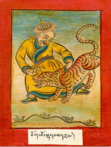 In Yeshe Tsogyal's biography, Lady of the Lotus-Born, there was a contest among Guru Rinpoche's disciples to show signs of accomplishment. "With the mudra of the hook, the mantra of summoning and the power of his concentration, Sogpo Lhapel caused a pregnant tigress to appear from the south.